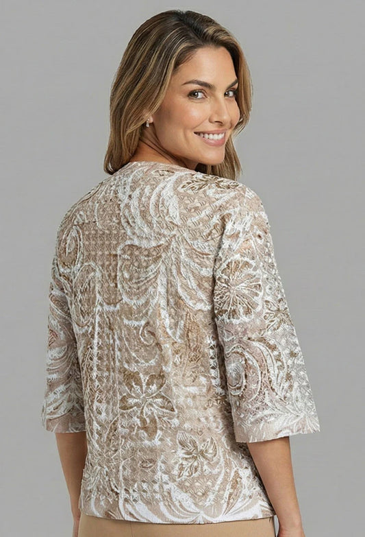 TAN PRINT KNIT PULLOVER